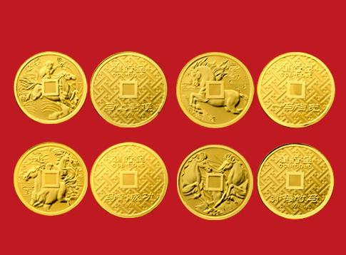 马年祝福,仕途胜利、学业胜利、商业胜利、爱情胜利,正面主题图案,背面寓意文字。整套包括马上封侯钱、一马当先钱、马到成功钱、以及青梅竹马钱。