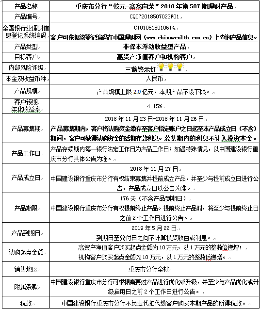 2018年第507期理财产品说明书
