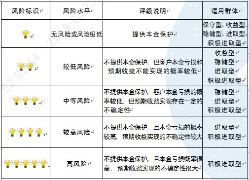 本产品为非保本浮动收益型理财产品,不保证本金和收益,请您充分认识投资风险,谨慎投资。本期产品期限为121天(中国建设银行有权对产品进行展期或提前终止),存续期内,产品不接受申购或赎回申请。本期产品内部风险评级级别为三盏警示灯,风险水平属于中等风险。最不利情况下,您将损失全部收益甚至包括全部本金。本理财产品适用于稳健型、进取型 、积极进取型客户。