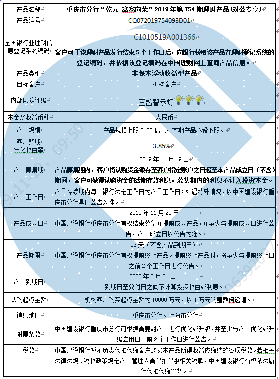 2019年第754期理财产品说明书