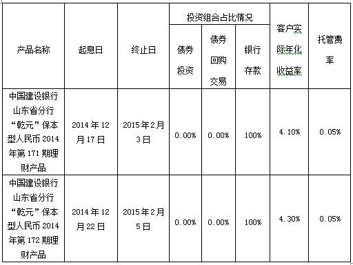 中国建设银行山东省分行“乾元”保本型理财产品到期公告