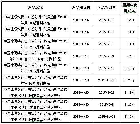 中国建设银行山东省分行“乾元通财”2015年第90,91,92,93,94,95,96,97 ,101期理财产品成立公告