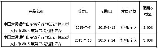 中国建设银行山东省分行“乾元”保本型理财产品成立公告