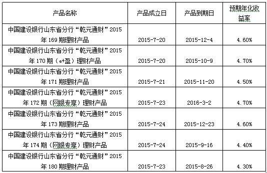 中国建设银行山东省分行“乾元通财”2015年第169 170 171 172 180 173 174期理财产品成立公告