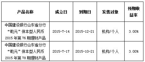 中国建设银行山东省分行“乾元”保本型理财产品成立公告