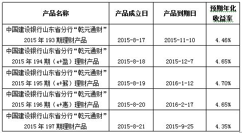 中国建设银行山东省分行“乾元通财”2015年5期理财产品成立公告