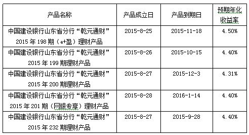 中国建设银行山东省分行“乾元通财”2015年5期理财产品成立公告