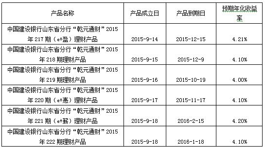 中国建设银行山东省分行“乾元通财”2015年6期理财产品成立公告