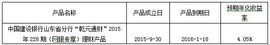 中国建设银行山东省分行“乾元通财”2015年1期理财产品成立公告