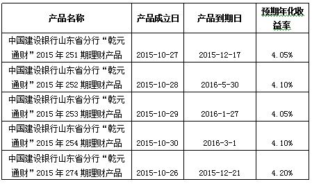 中国建设银行山东省分行“乾元通财”2015年5期理财产品成立公告