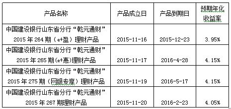 中国建设银行山东省分行“乾元通财”理财产品2015年4期成立公告