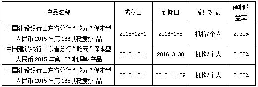 中国建设银行山东省分行“乾元”保本型理财产品2015年第166-168期成立公告