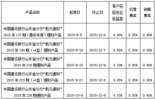 中国建设银行山东省分行“乾元通财”2015年5期产品到期公告