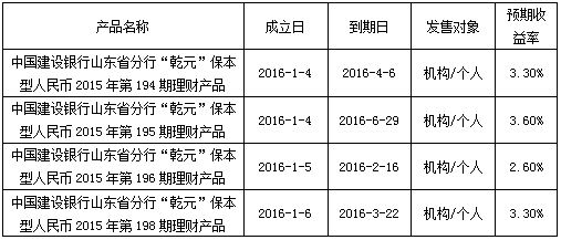 中国建设银行山东省分行“乾元”保本型理财产品成立公告