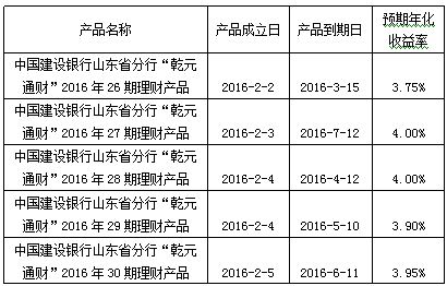 中国建设银行山东省分行“乾元通财”理财产品成立公告
