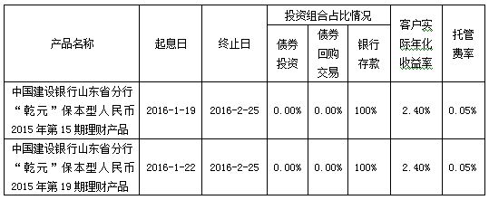 根据与投资者的约定,中国建设银行山东省分行发行的下列理财产品已经到期理财产品并完成资金兑付,现将有关情况公告如下: