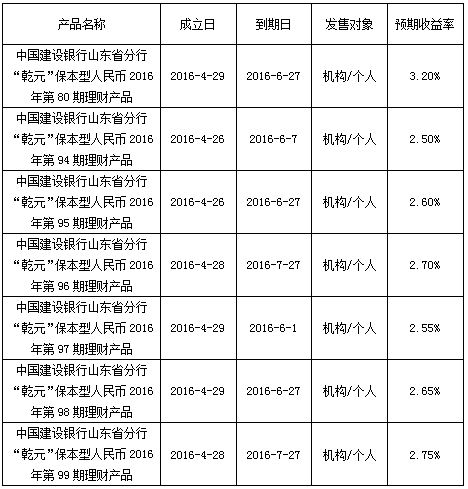 中国建设银行山东省分行“乾元”保本型人民币理财产品成立公告