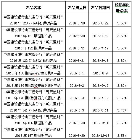 中国建设银行山东省分行“乾元通财”产品成立公告