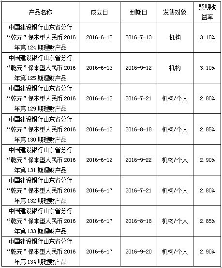 中国建设银行山东省分行“乾元”保本型人民币理财产品成立公告