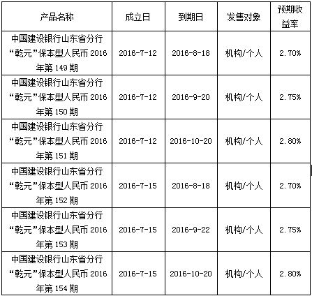 中国建设银行山东省分行“乾元”保本型理财产品成立公告